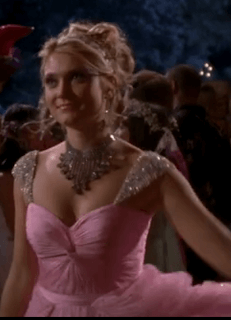 I love love love the dress Casey wore in last night’s episode of Greek! Since I won’t be going to any balls anytime soon, future fantasy wedding dress design? Possibly. Minus the ugly, chunky necklace. Gross.